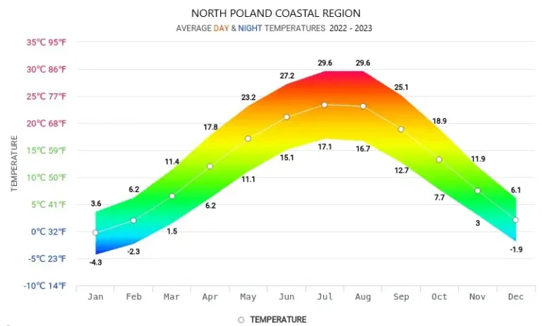 Well good news, as the weather in Poland has four distinct seasons with 2 additional periods described as early spring and late autumn, and from the early spring the temperature starts to become very pleasant and delicately rises to a very agreeable 25°C to 30°C in the height of the summer, just perfect for those long summer days with the temperature easily allowing you to get in 2 full rounds a day!
